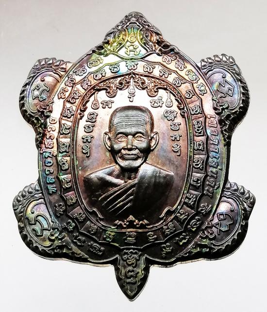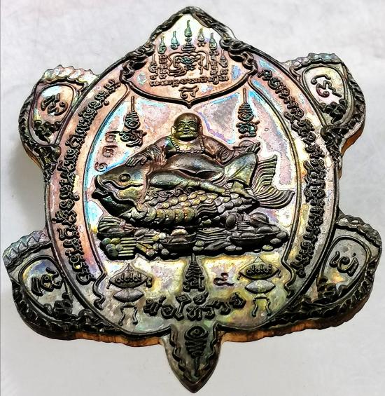 เหรียญพญาเต่าเทวดา หลวงปู่สรวง เทวดาเล่นดิน รุ่น พ่อให้รวย ปี62 วัดประชานิมิต จ.ศรีสะเกษ เนื้อนวะโลหะ ตอกเลขกำกับ หมายเลข ๒๒๑ เหรียญสภาพสวยเก็บเดิม ๆ ผิวพรายรุ้งกระจายทั่วทั้งเหรียญ