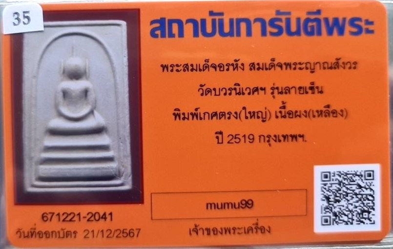 @# พระสมเด็จ อรหัง สมเด็จญาณสังวร พิมพ์เกศตรง หลังลายเซ็นต์ เนื้อผงเหลือง..พ.ศ.2519 พร้อมบัตรรับรอง เป็นพระออกวัดบวรนิเวศน์ปีลึกๆ....สวยแชมป์มากประกวดได้เลย..พระแท้นิยมมาตรฐานสากล มีรายการประกวดมาตรฐ |