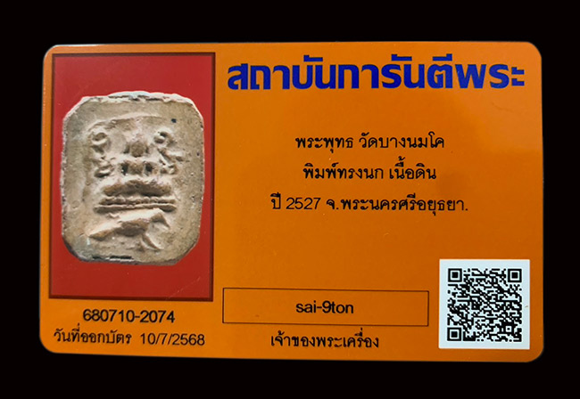 หลวงพ่อปาน วัดบางนมโค พิมพ์นก ปี.2527 ......................800