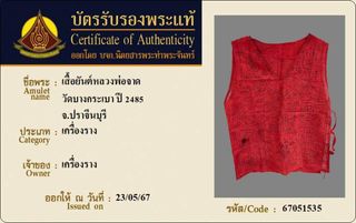 วัดใจครับ . เสื้อยัน ลพ.จาด วัดบางกระเบา ปราจีนบุรั ปี2485 นักลบต้องมีบาดแผล ตามรูป.. |
