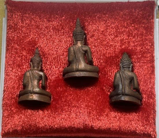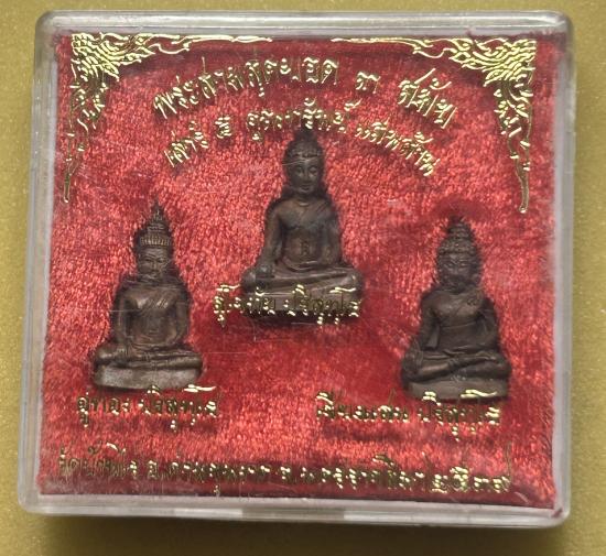 พระสามสุดยอดสามสมัย รุ่นเสาร์ 5 1 ชุด 3 องค์ พิธีใหญ่ หลวงพ่อคูณปลุกเสก เนื้อนวะ พร้อมกล่องเดิม