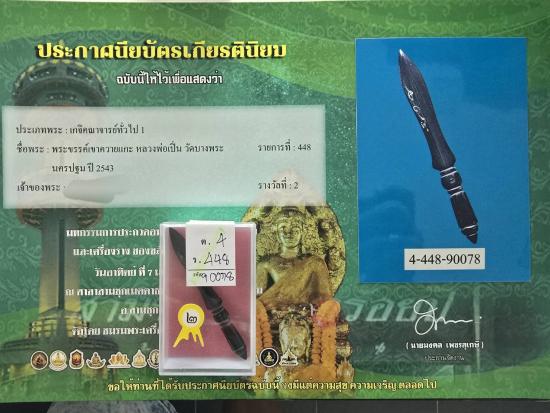 พระขรรค์เขาควายแกะ หลวงพ่อเปิ่น วัดบางพระ นครปฐม ปี 2543 สภาพสวยติดรางวัล องค์รองแชมป์ พร้อมใบประกาศ |