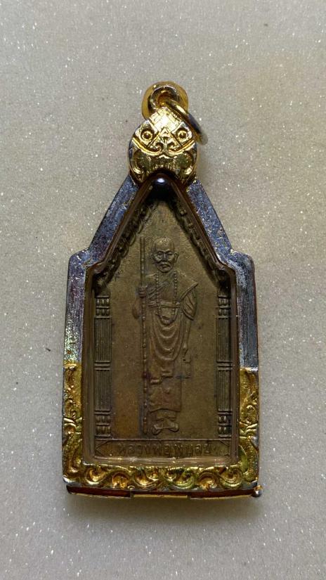 เหรียญหลวงพ่อพิบูลย์ วัดบ้านแดง อุดรธานี เนื้อทองเหลือง ตอกเลข454 เลี่ยมกรอบไมคอน 500