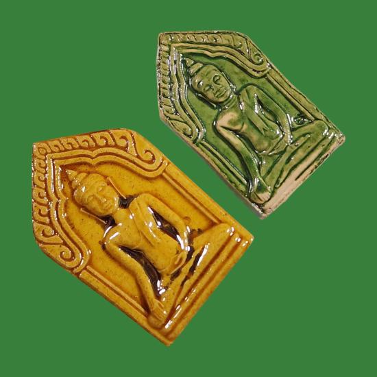 พระขุนแผนเคลือบ หลวงปู่ทิม วัดพระขาว จ.อยุธยา ปี2545 (ฝังตะกรุด3ดอก 1 องค์) รวม2องค์สภาพตามรูป