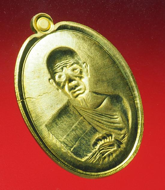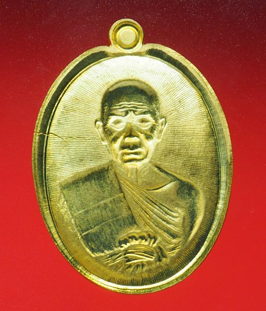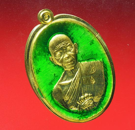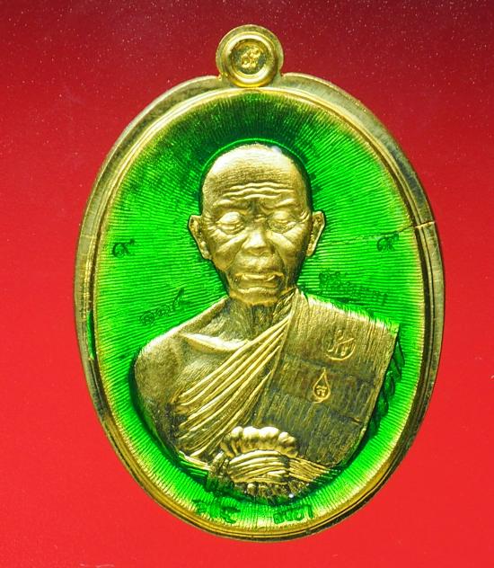 เหรียญรูปไข่ครึ่งองค์ EOD หลวงพ่อคูณ ปริสุทโธ วัดบ้านไร่ รุ่นปาฏิหาริย์ EOD ปี 2556 เนื้อทองเหลืองฝาบาตรลงยา หลังแบบ ไม่ตัดปีก หมายเลข |
