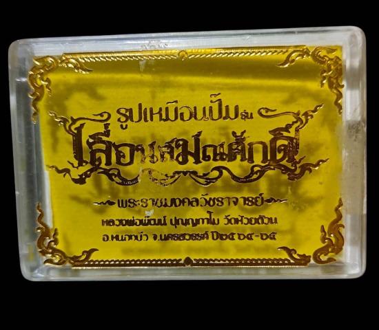 ... หลวงพ่อพัฒน์ วัดห้วยด้วน รุ่นเลื่อนสมณศักดิ์ พิมพ์ใบโพธิ์ เนื้อทองเหลือง No. 156 กล่องเดิม |