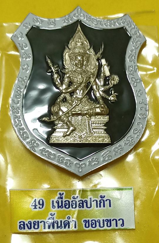 เหรียญโล่ห์เนื้ออัลปาก้า ลงยาดำขอบขาว ท้าวมหาพรหม รุ่นเจ้าสัวพันล้าน บอย ท่าพระจันทร์ ปี๖๘ พิธีวัดคลังทอง อยุธยา โดยเกจิดังทั่วไทย ตอกโค๊ต-เลข๔๔๙ สวยชัด มวลสารหลักล้าน รับประกันครับ