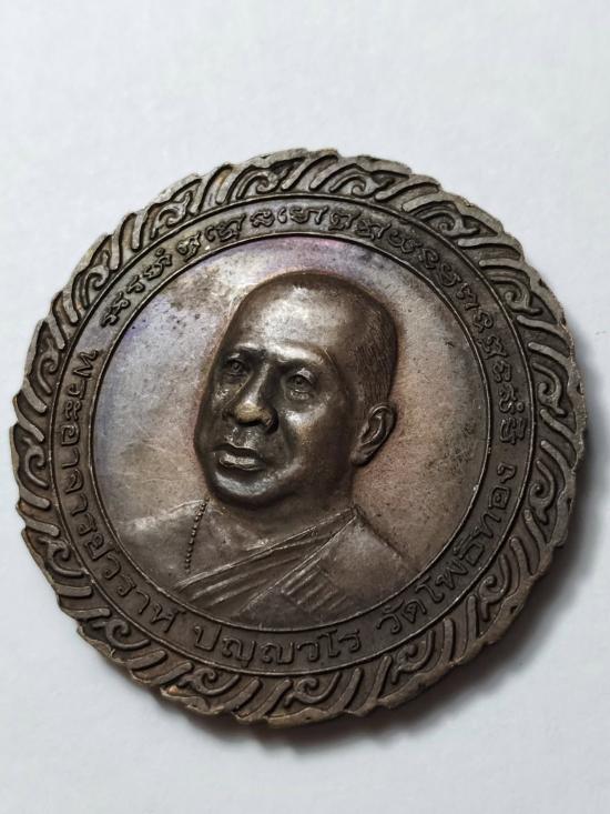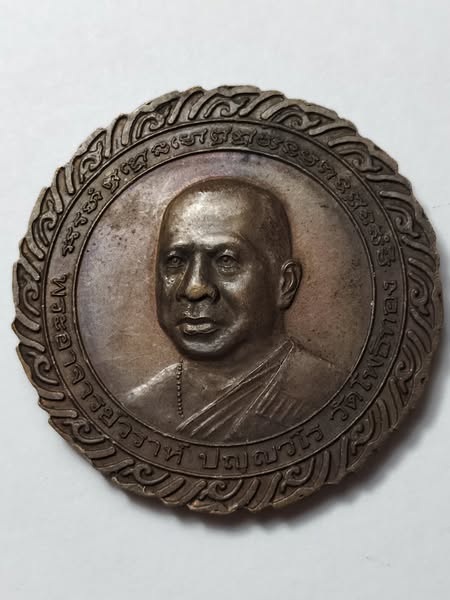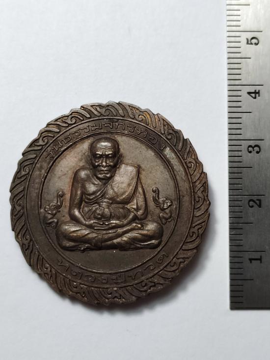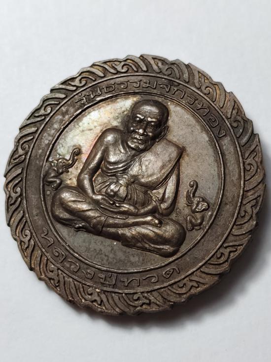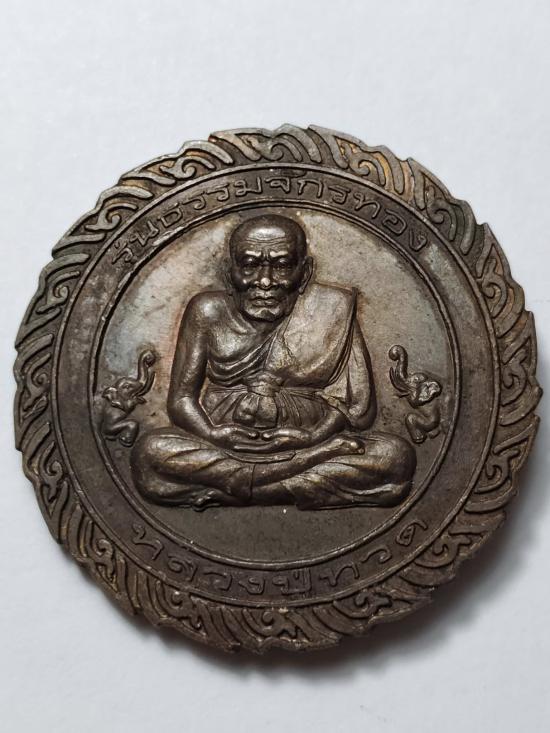 เหรียญพระอาจารย์วราห์ รุ่นธรรมจักรทอง อ.วราห์ วัดโพธิ์ทอง บางมด ปี 2545 - บล็อกหลังหลวงปู่ทวด เหยียบน้ำทะเลจืด |