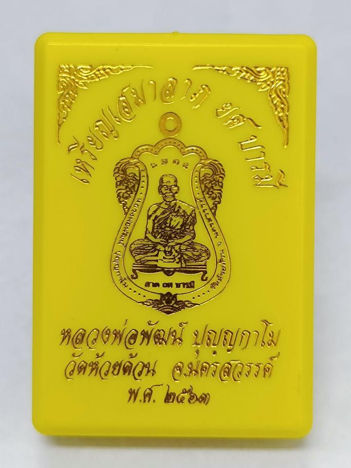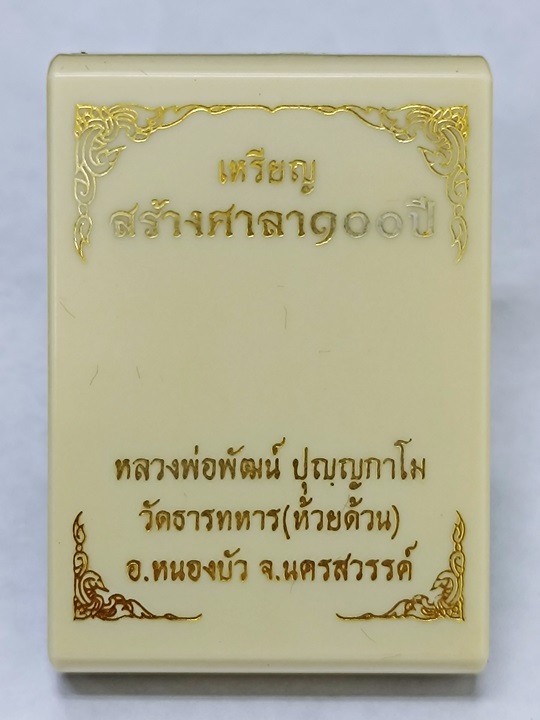 เหรียญเสมา รุ่น สร้างศาลา 100 ปี หลวงพ่อพัฒน์ ปุญญกาโม วัดห้วยด้วน จ.นครสวรรค์ เนื้อทองทิพย์ หมายเลข 454 |