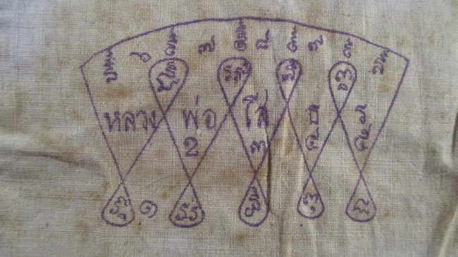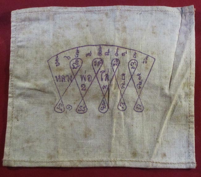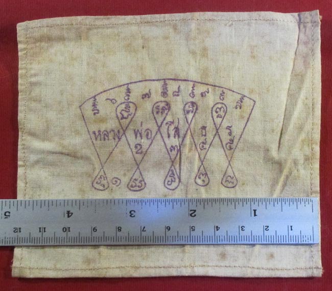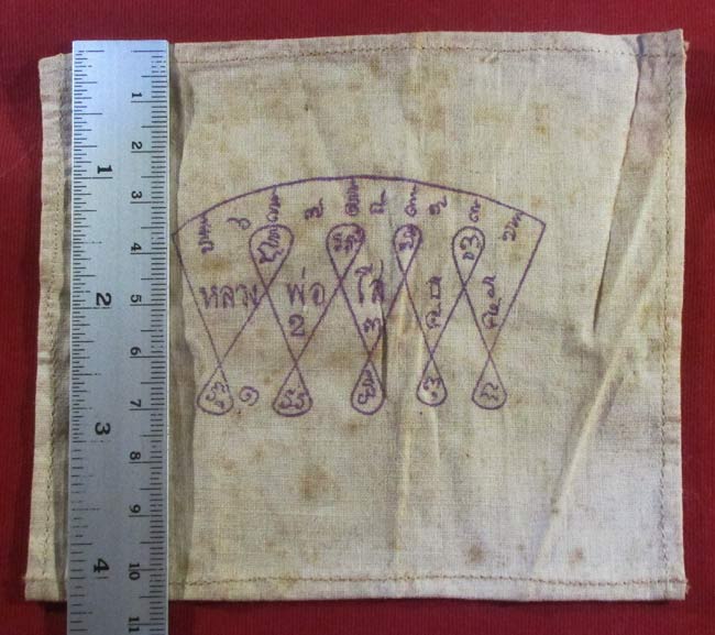 ผ้ายันต์ ไม่ทราบที่ จารยันต์ด้วยมือ เขียนว่า "หลวงพ่อโสธร" เนื้อผ้าดูเก่า ครับ (พระบ้าน ครับ) |