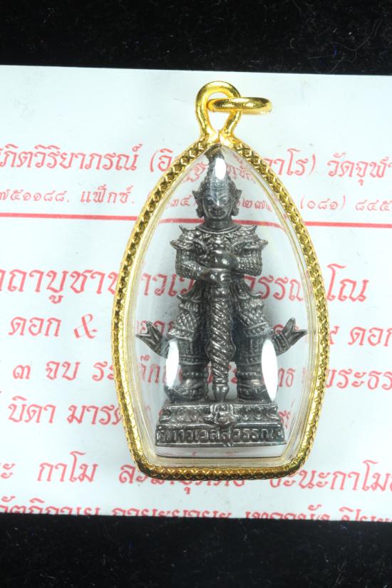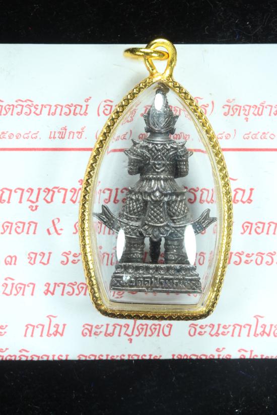 ** 100 เดียวพร้อมเลี่ยมไมครอน **ท้าวเวสสุวรรณฯ วัดจุฬามณี รูปหล่อขนาดห้อยคอ หน้าเทพ เนื้อชนวนรมดำ ปี 2562// |