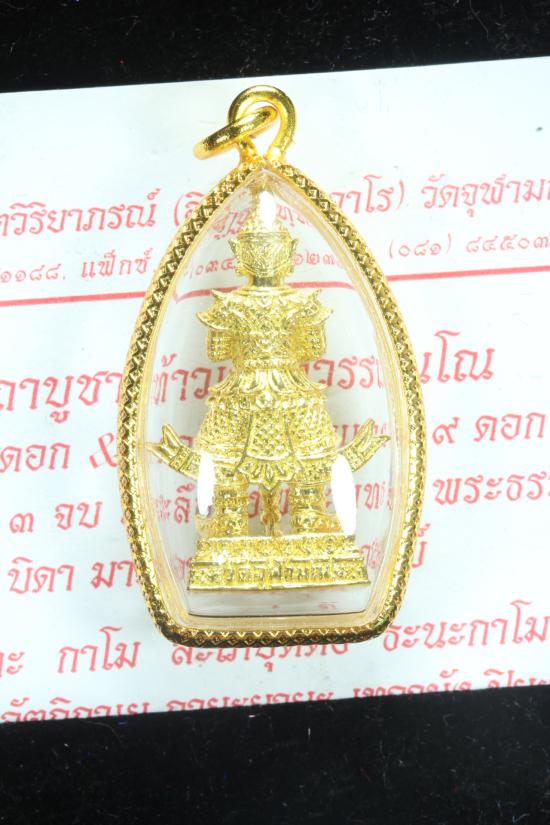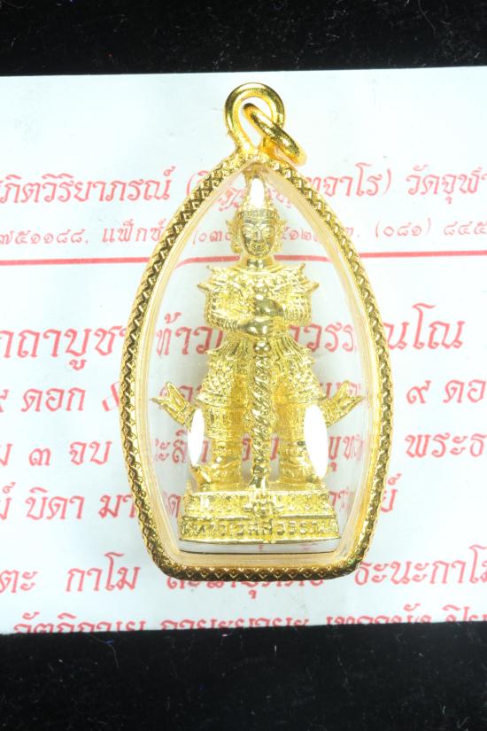 ** 100 เดียวพร้อมเลี่ยมไมครอน **ท้าวเวสสุวรรณฯ วัดจุฬามณี รูปหล่อขนาดห้อยคอ หน้าเทพ เนื้อทองทิพย์ ปี 2562//L |