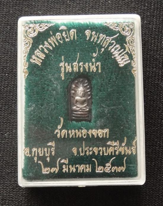 หลวงพ่อยิด ปรกใบมะขาม เนื้อเงิน รุ่นสรงน้ำ วัดหนองจอก ปี 37 พร้อมกล่องเดิม หายาก |