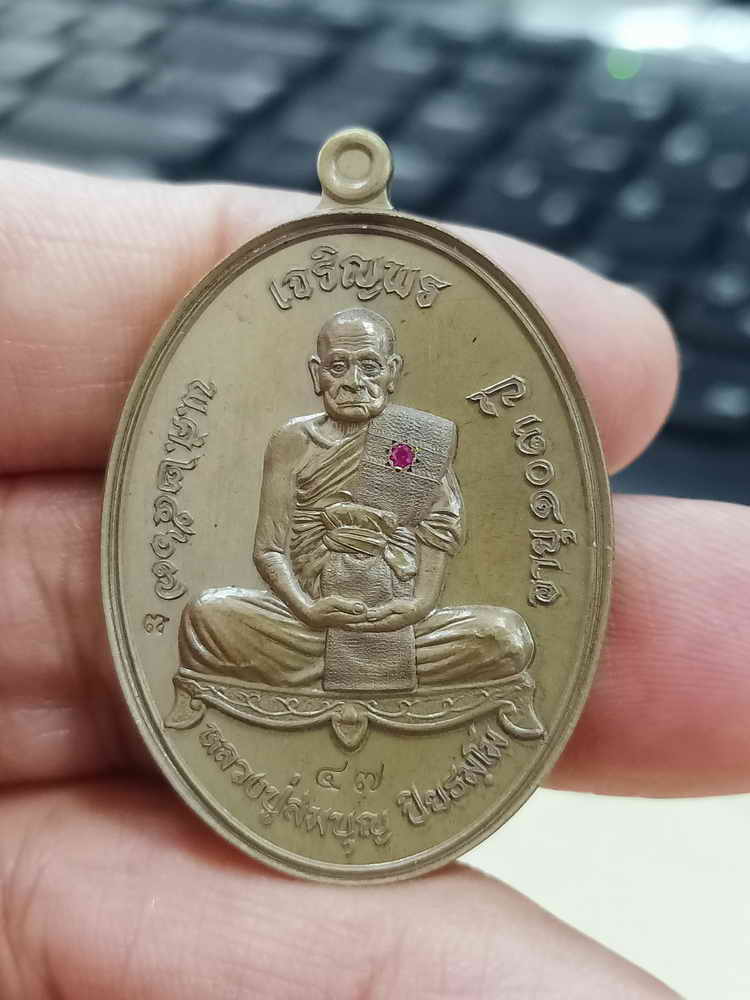 วัดใจ 100 เหรียญเจริญพร หลวงพ่อสมบุญ วัดลำพันบอง จ.สุพรรณบุรี ปี 2567 ชนวน ฝังทับทิม หมายเลข 47 กล่องเดิม***สายสุพรรณดันดี