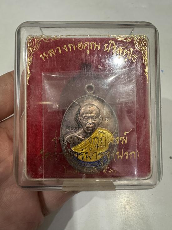 เหรียญห่วงเชื่อม รุ่นสร้างกุฏิสงฆ์ ปี2553 เนื้อเงิน ลงยา no.804 มีกล่อง