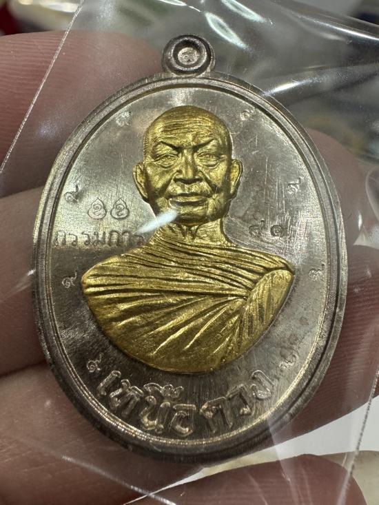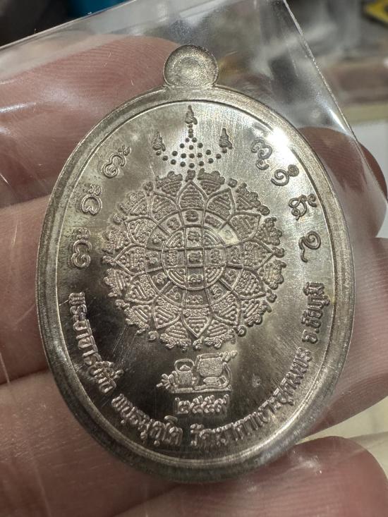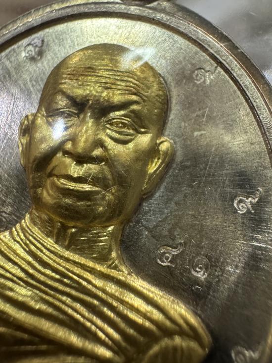 หลวงปู่จื่อ วัดเขาตาเงาะฯ เหรียญเหนือดวง รุ่นแรก ปี2559 เนื้อเงิน ไม่ตัดปีก หน้ากากทองคำ no.41 ไม่มีกล่อง