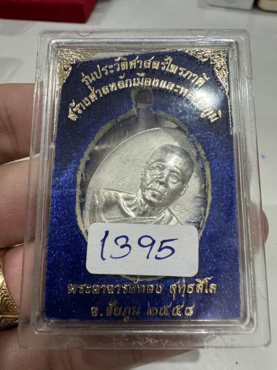 หลวงพ่อทอง วัดบ้านไร่ เหรียญห่วงเชื่อม รุ่นประวัติศาสตร์ไตรภาคี ปี2558 เนื้อเงิน no.1395 มีกล่อง