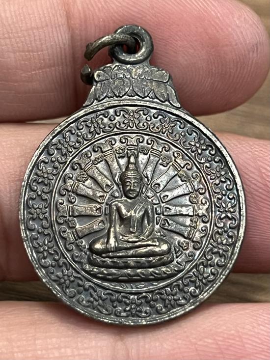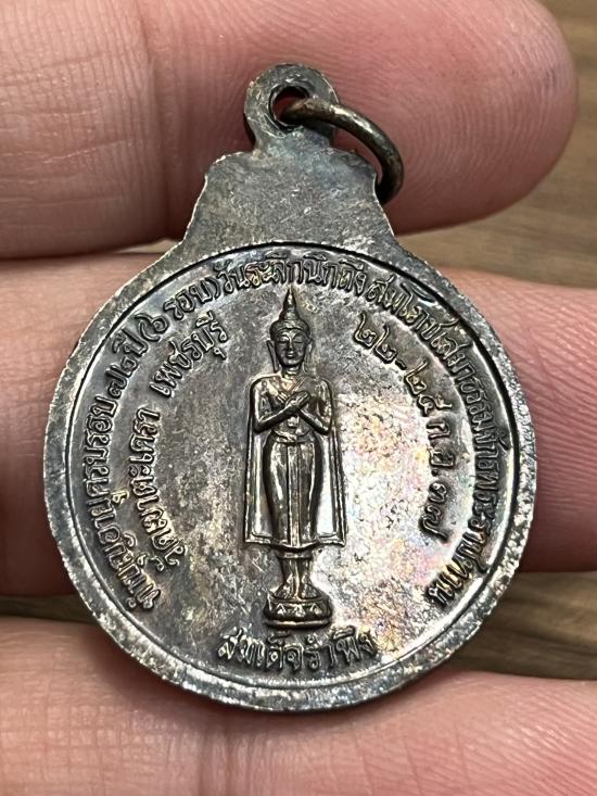 เหรียญเนื้อเงินหลวงพ่อวัดเขาตะเคราเสมาธรรมจักรด้านหลังสมเด็จรำพึง ทำบุญอายุครบรอบ72ปี(6รอบ) วัดเขาตะเครา จ.เพชรบุรี |