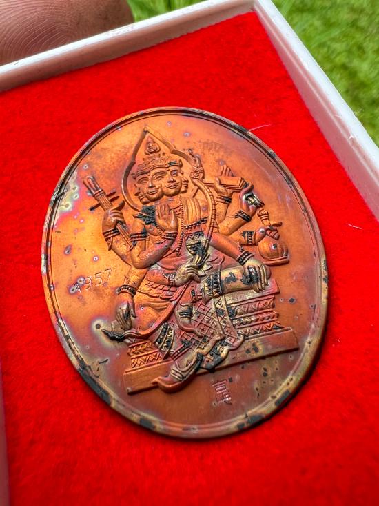 เหรียญพรหมประทานทรัพย์100ล้าน หลวงปู่ศิลา เนื้อชนวนทองแดงโลหะธาตุ เลข 1957 ผิวสวยๆ โบราณ คลาสสิกมากครับ |