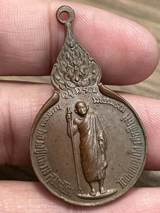 เหรียญยืนถือไม้เท้าหลวงปู่แหวน วัดดอยแม่ปั๋ง หลังรวมใจ ปี 2519