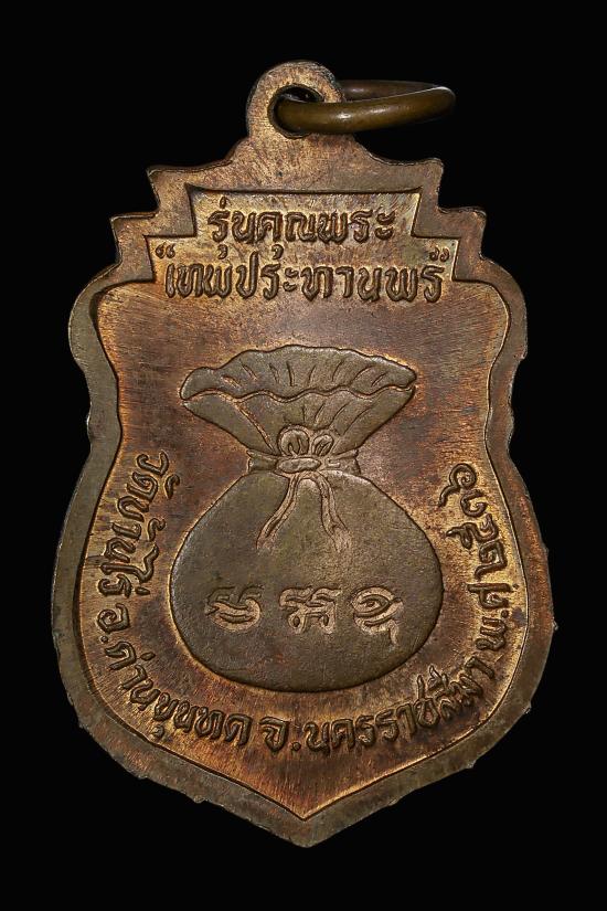เหรียญเสมาหลวงพ่อคุณ รุ่นคุณพระเทพประทานพร ปี2536 เนื้อทองฝาบาตร จ.นครราชสีมา |