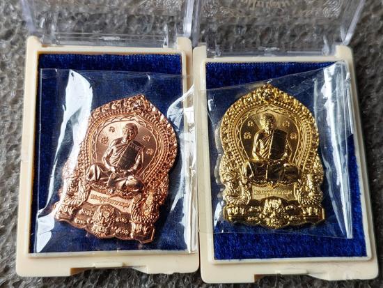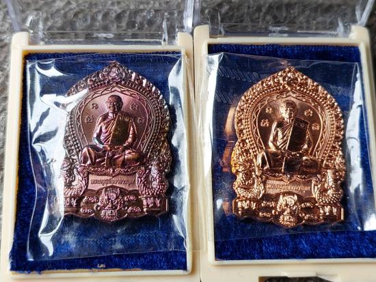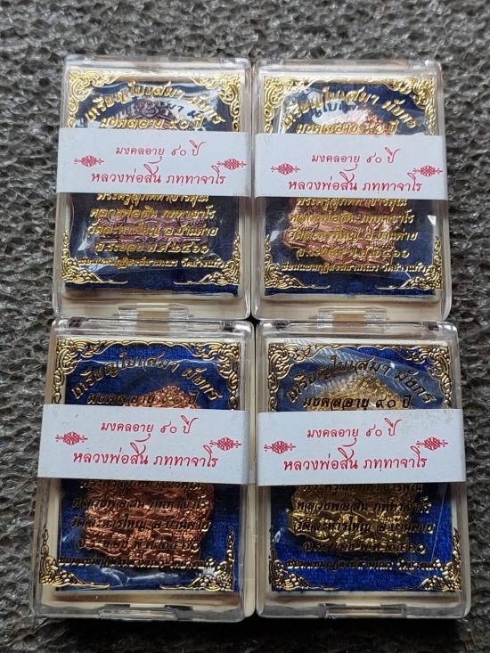 เหรียญใบเสมามังกร หลวงพ่อสิน วัดละหารใหญ่ เนื้อทองฝาบาตร 4 เหรียญ |