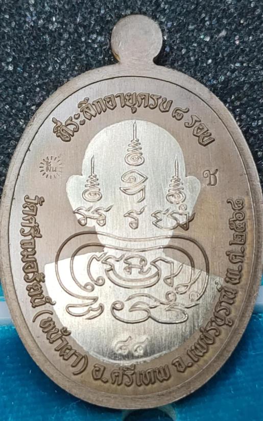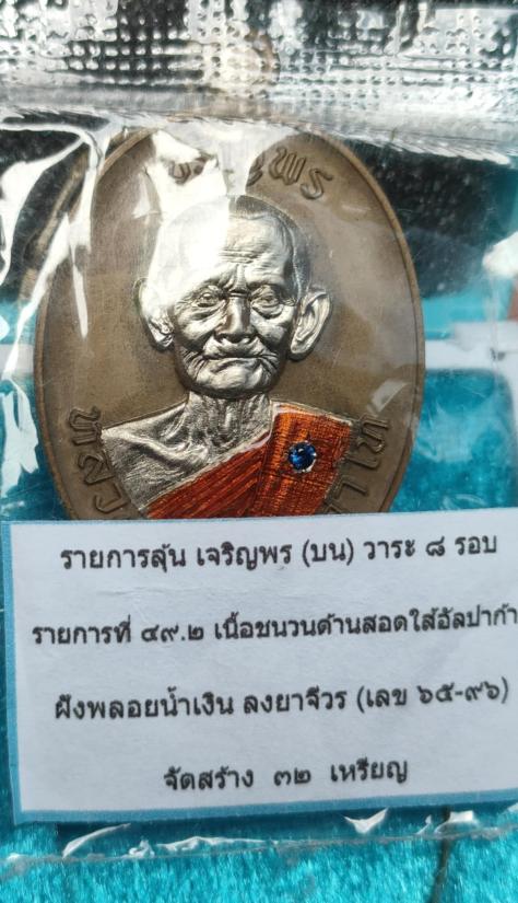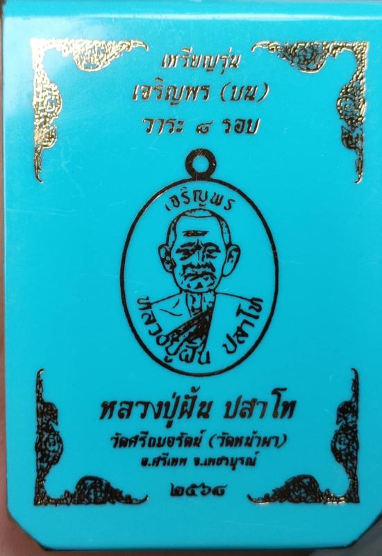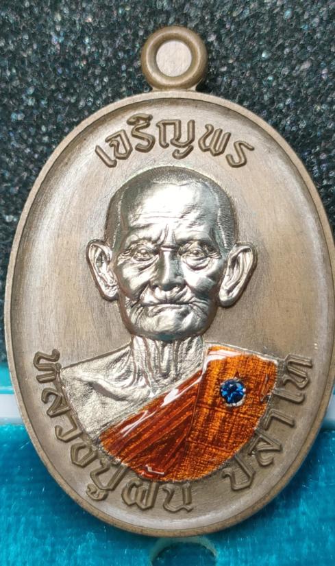 เหรียญ"เจริญพรบน"วาระ๘รอบ หลวงปู่ฝั้น ปสาโท วัดศรีถมอรัตน์(หน้าผา) เพชรบูรณ์ เนื้อชนวนสอดไส้อัลปาก้า ฝังพลอยน้ำเงิน ลงยาจีวร หมายเลข ๘๔ พร้อมกล่อง ..หลวงปู่ท่านศิษย์สายตรงหลวงพ่อเดิมวัดหนองโพ |