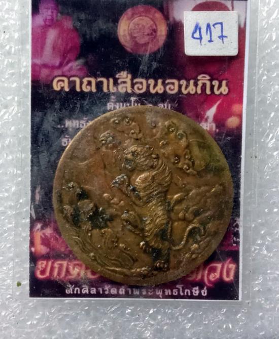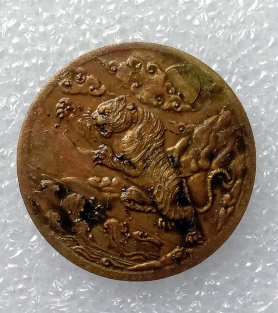 เหรียญเสือนอนกินรุ่นครูยกศิษย์ให้เหนือดวง อ.ประสูติ วัดในเตา จ.ตรัง แช่น้ำมันเสือ ปี2565 |