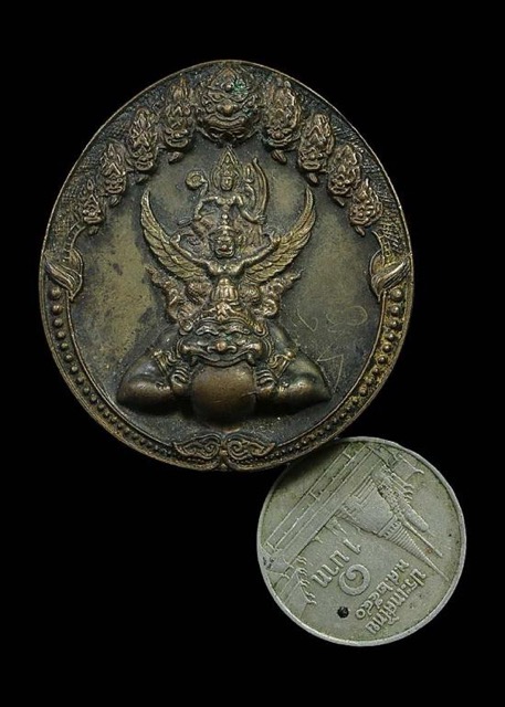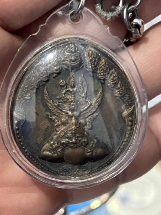 เหรียญ นารายณ์ทรงครุฑประทับราหู พิมพ์ใหญ่ เจ้าคุณธงุชัย วัดไตรมิตรฯ (เลี่ยมพลาสติกกันน้ำ) มีรอยจารย์ |