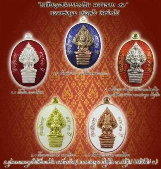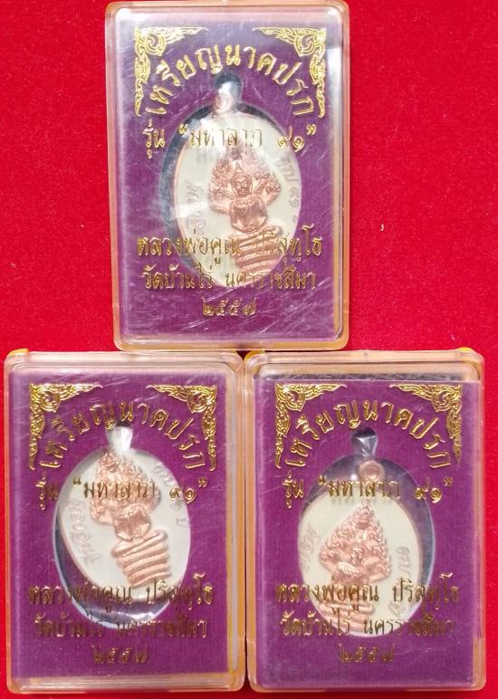 เปิเหรียญพระนาคปรก หลวงพ่อคูณ รุ่น มหาลาภ ๙๑ เนื้อทองแดงผิวไฟลงยาสีขาว ออกปี ๕๗ พร้อมกล่องเดิม สภาพสวย จำนวน 3 เหรียญ |