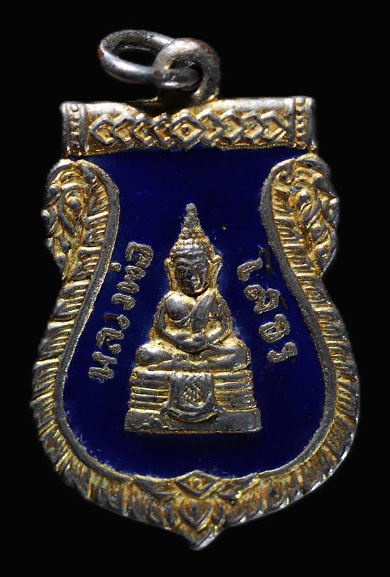 เหรียญพระพุทธโสธร พิมพ์เสมา รุ่น ๒ เนื้อกะหลัยทองลงยาน้ำเงิน พ.ศ. ๒๕๓๓ |