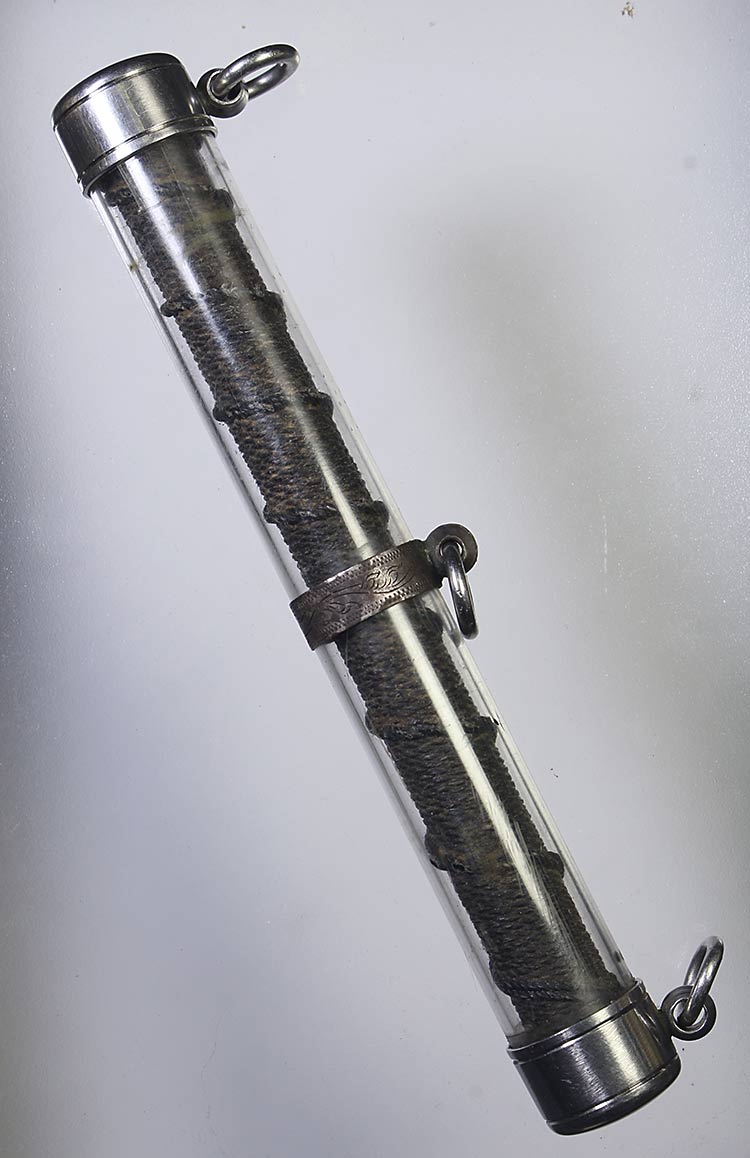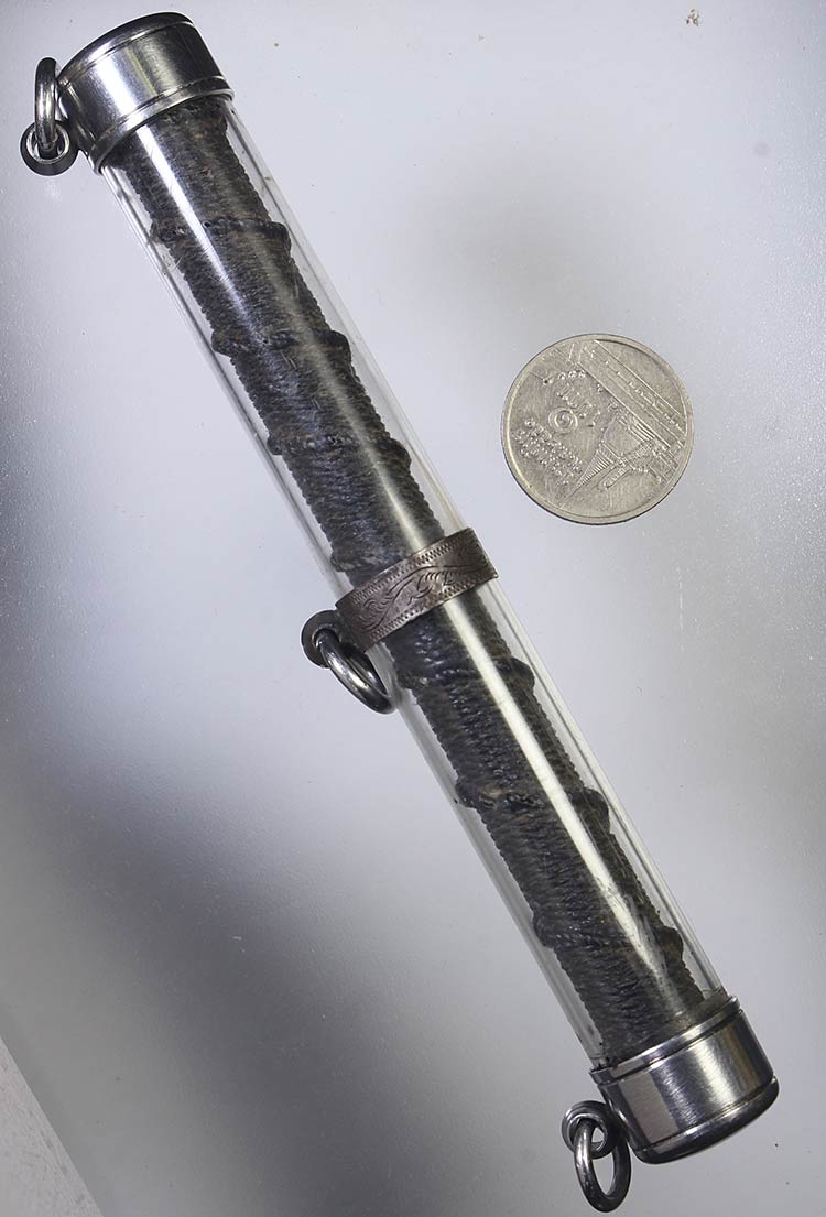 วัดใจ**เครื่องราง ตะกรุดโทน หลวงพ่อประสิทธิ์ วัดไทรน้อย เนื้อตะกั่วถักเชือกเขียว ยาว 4.5นิ้ว ห่วงกลางเนื้อเงิน....ตามสภาพครับ