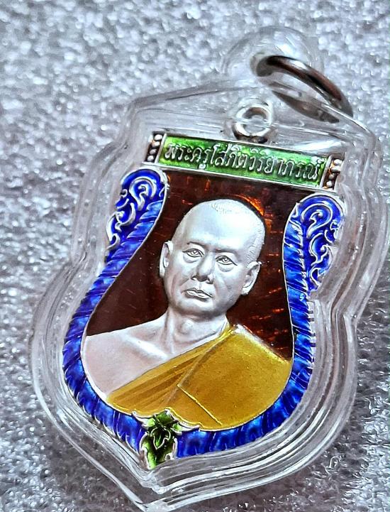 เหรียญนี้สวยมากครับ ออกวัด 2,500 เหรียญเสมาหน้าแซยิด หูเชื่อมโบราณ เจริญพร ลาภมาไม่ขาด หลวงพ่ออิฏฐ์ วัดจุฬามณี เนื้อเงินลงยาแดง ลงยาจีวร พร้อมกล่องเดิม