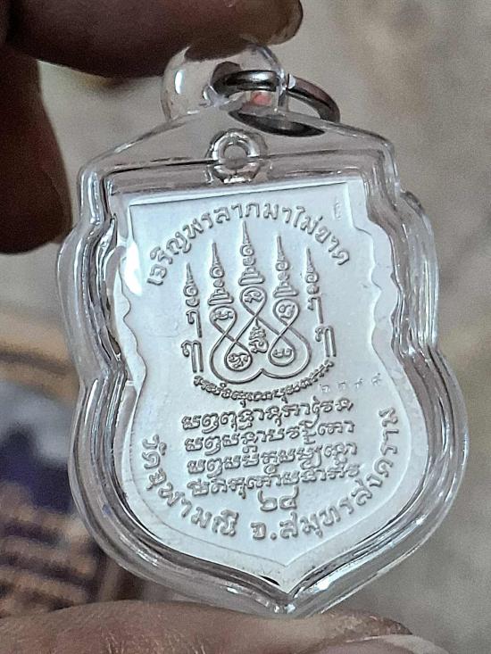 เหรียญเสมาหน้าแซยิด หูเชื่อมโบราณ เจริญพร ลาภมาไม่ขาด หลวงพ่ออิฏฐ์ วัดจุฬามณี เนื้อเงินลงยาแดง ลงยาจีวร พร้อมกล่องเดิม |