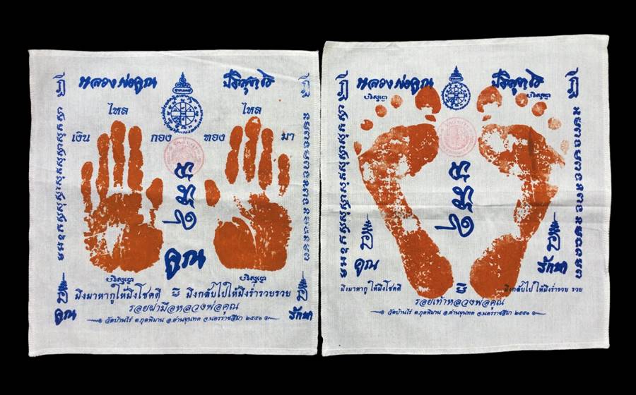 +!!เคาะเดียวllดง ตลอดสาย!!+ (รับคู่ 2 ผืน) ผ้ายันต์ รอยมือ รอยเท้า หลวงพ่อคูณ วัดบ้านไร่ ปี51 ขนาด 28x30 ซม. ทำจากผ้าดิบอย่างดี ปั้มตราวัด สวยเดิมๆเลยครับ