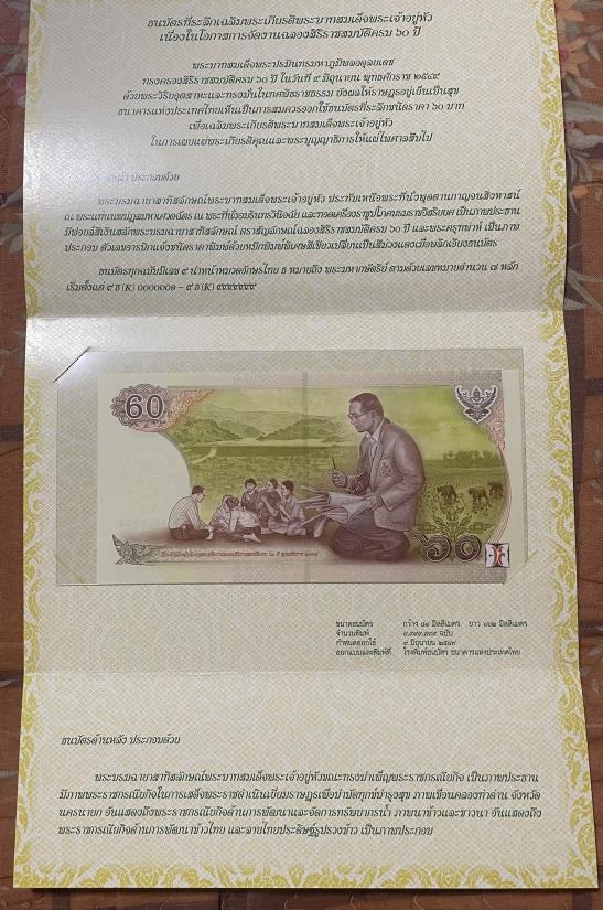 สภาพใหม่ ชนิดราคา 60 บาท ออกเมื่อวันที่ 9 มิถุนายน 2545 หมายเลข 9 ธ 1820558 /9 K 1820558 จำนวน พิมพ์ 9,999,999 ฉบับ |