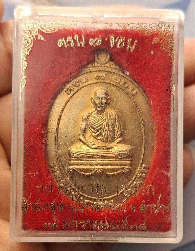 เหรียญหลวงพ่อเกษม เขมโก รุ่น 7 รอบ ปี 38 เนื้อทองฝาบาตร พร้อมกล่องเดิมๆ |