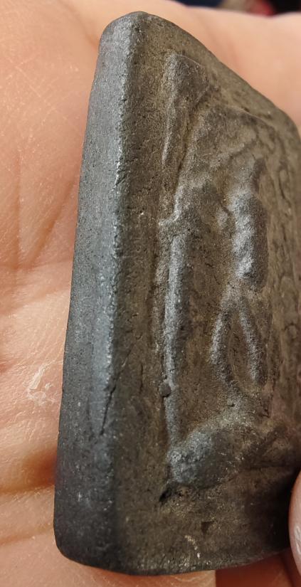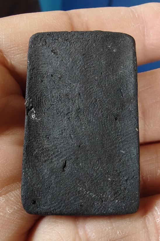 เป็นเนื้อผงใบลานเผาเก่า ด้านหลังกดพิมพ์ด้วยรอยนิ้วมือ |