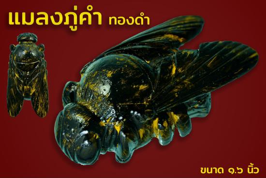 แมลงภู่คำ ตัวเมีย แกะสามขวัญ ใต้ตัวบรรจุปรอท ผงยาเก่าจุดมงคลใต้ปี ๓ ๖ ขนาด ๑.๖ นิ้ว สล่าประอ่อง คำดี