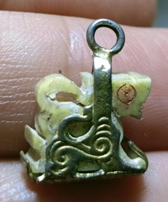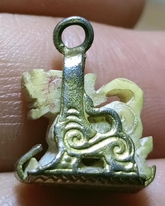 สิงห์งาแกะไม่ทราบที่ เนื้องาแท้ เก่า งานแบบนี้ต้องมี30-40ปี มีจารอัขระทั้งตัว เคาะเดียว