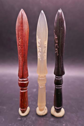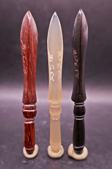 !!!!วัดใจ 9 บาท!!!! 3เล่ม พระขรรค์เขาควายเผือกแกะ รุ่นไตรมาศ44 หลวงพ่อเปิ่น วัดบางพระ พ.ศ.2544 เข้มขลัง และหายากมากๆ เนื้อเขาควายเผือก,ไม้พยุง,เขาควายดำ