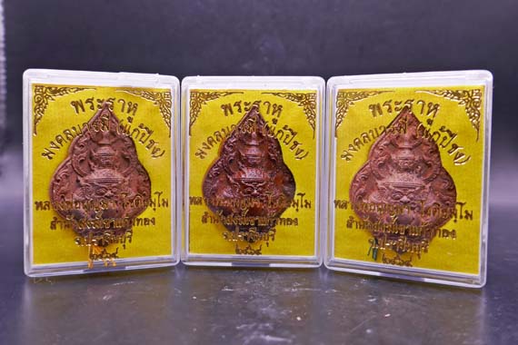!!!!วัดใจ 9 บาท!!!! 3 องค์ พระราหูมงคลบารมี หลวงปู่บุญมา โชติธัมโม วัดเขาแก้วทอง จ.ปราจีนบุรี ปี 2564 หลังฝั่งตรีเงิน,ตรีรุ้ง,พระขรรค์นวะ+ตะกรุดคู่ พร้อมกล่องเดิม...พ5