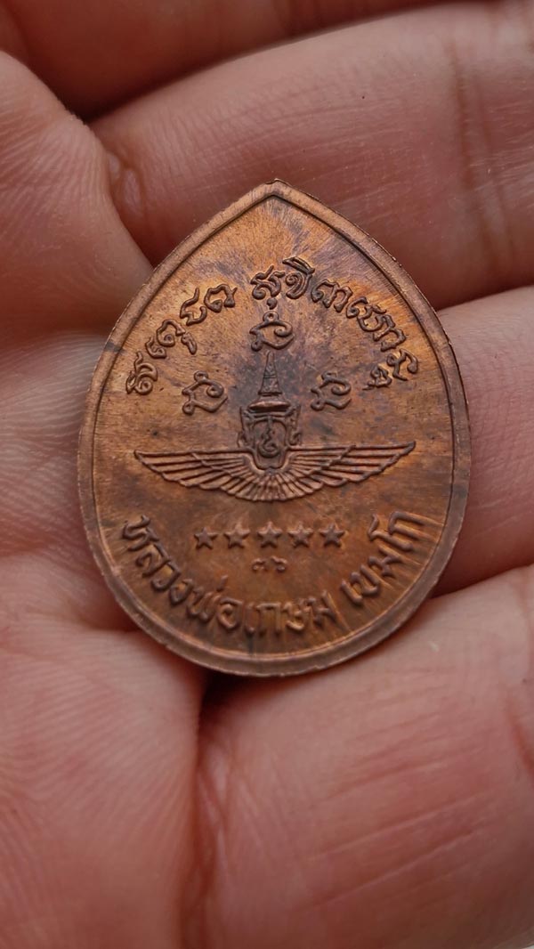 เหรียญหลวงพ่อเกษม เนื้อทองแดงผิวไฟ จัดสร้างโดย พลอากาศเอก กันต์ พิมานทิพย์ ขณะดำรงตำแหน่งผู้บัญชาการทหารอากาศ ปี พ.ศ. 2536 เพื่อแจกจ่ายให้กับกำลังพลในกองทัพอากาศ