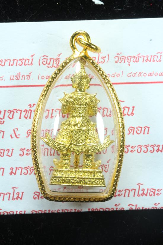 ** 100 เดียวพร้อมเลี่ยมไมครอน **ท้าวเวสสุวรรณฯ วัดจุฬามณี รูปหล่อขนาดห้อยคอ หน้าเทพ เนื้อทองทิพย์ ปี 2562//N4 |