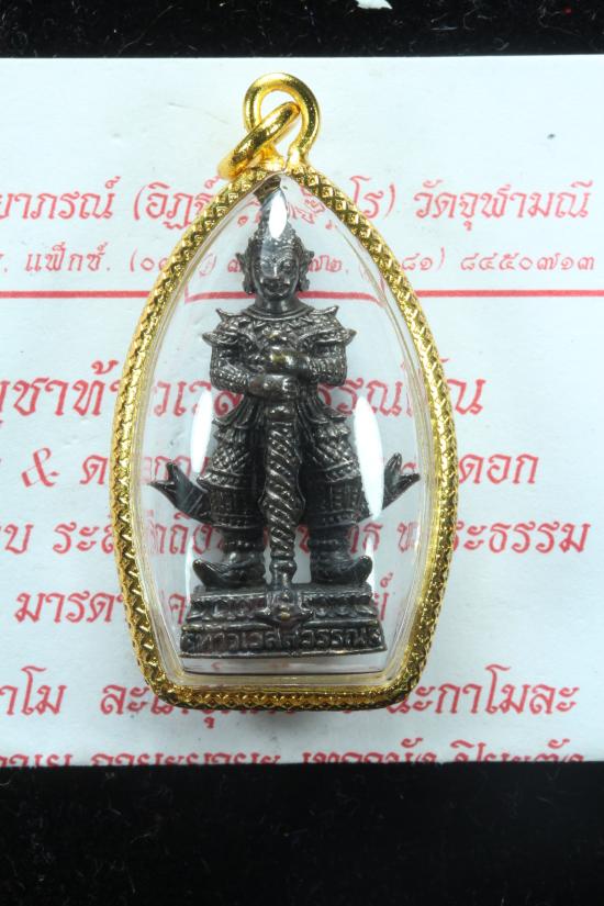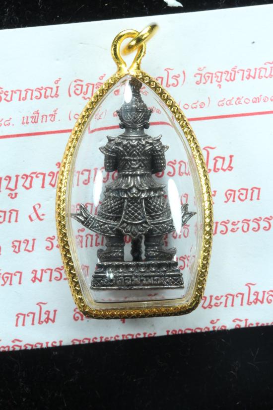 ** 100 เดียวพร้อมเลี่ยมไมครอน **ท้าวเวสสุวรรณฯ วัดจุฬามณี รูปหล่อขนาดห้อยคอ หน้าเทพ เนื้อชนวนรมดำ ปี 2562//N5 |