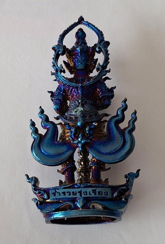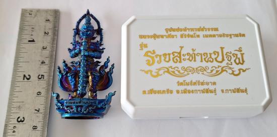 หลวงปู่ศิลา รูปหล่อลอยองค์ท้าวเวสสุวรรณ ขนาด7.5ซ.ม รุ่นรวยสะท้านปฐพี วัดโพธิ์ศรีสะอาด เนื้อชุบไทเทน้ำเงิน เลขสวยNo.9 |