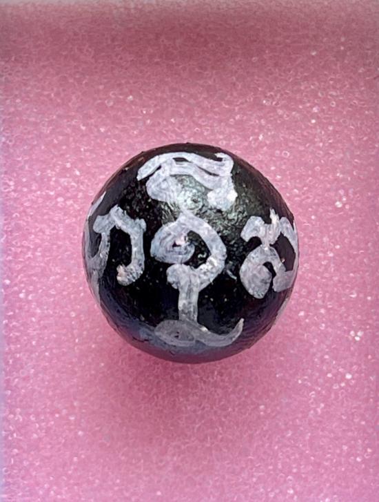 ลูกอมครั่งมนต์พระกาฬ หลวงพ่อวิชัย วัดหัวเด่น (เนื้อครั่งเดียวกับที่ติดหลังเหรียญมนต์พระกาฬ) จารมือหมึกขาว เลขตอง 444 |