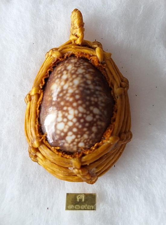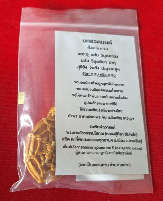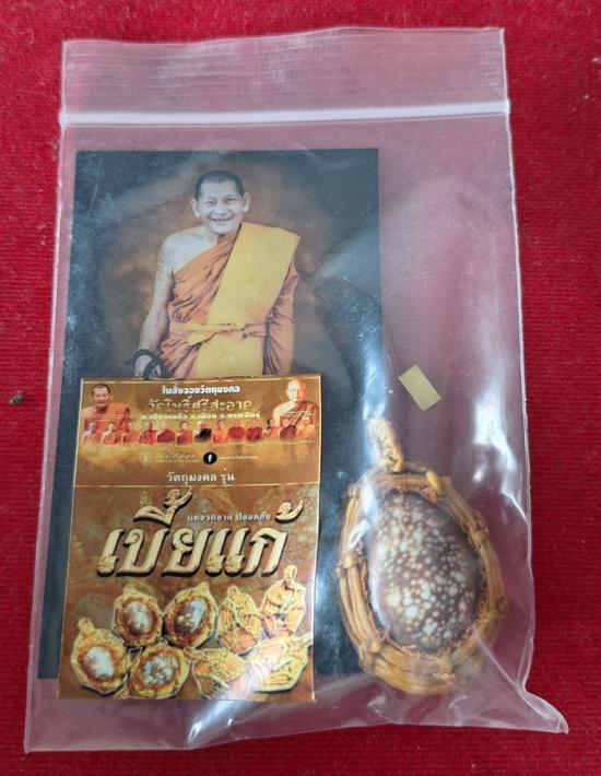 เบี้ยแก้ หุ้มจีวร ถักเชือก หลวงปู่ศิลา วัดโพธิ์ศรีสะอาด มีแผ่นเลขกำกับ ฝังตะกรุดทองเหลือง พร้อมใบคาถา ปี2567 |