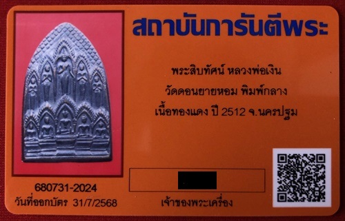เหรียญสิบทัศน์ปั้ม หลวงพ่อเงิน วัดดอนยายหอม พิมพ์กลาง บล๊อกนิยมศอกขาด เนื้อทองแดง ปี 2512 จ.นครปฐม สภาพสวย มาพร้อมบัตรรับรองครับ