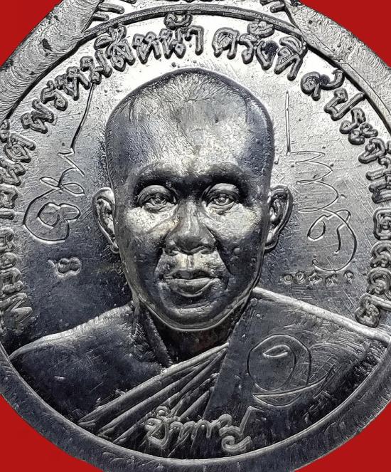 หลวงพ่อชำนาญ วัดบางกุฏีทอง จ.ปทุมธานี เหรียญพรหมเก้ายอด พิธีเป่ายันต์พรหมสี่หน้าครั้งที่ 9 ปี2552 เนื้อตะกั่ว มีรอยจาร ซองเดิม |